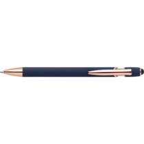 Alumínium golyóstoll rózsaarany részletekkel és érintővel, kék tollbetéttel.