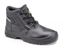 Fekete biztonsági védőlábbeli színbőrből, ESD tulajdonsággal.